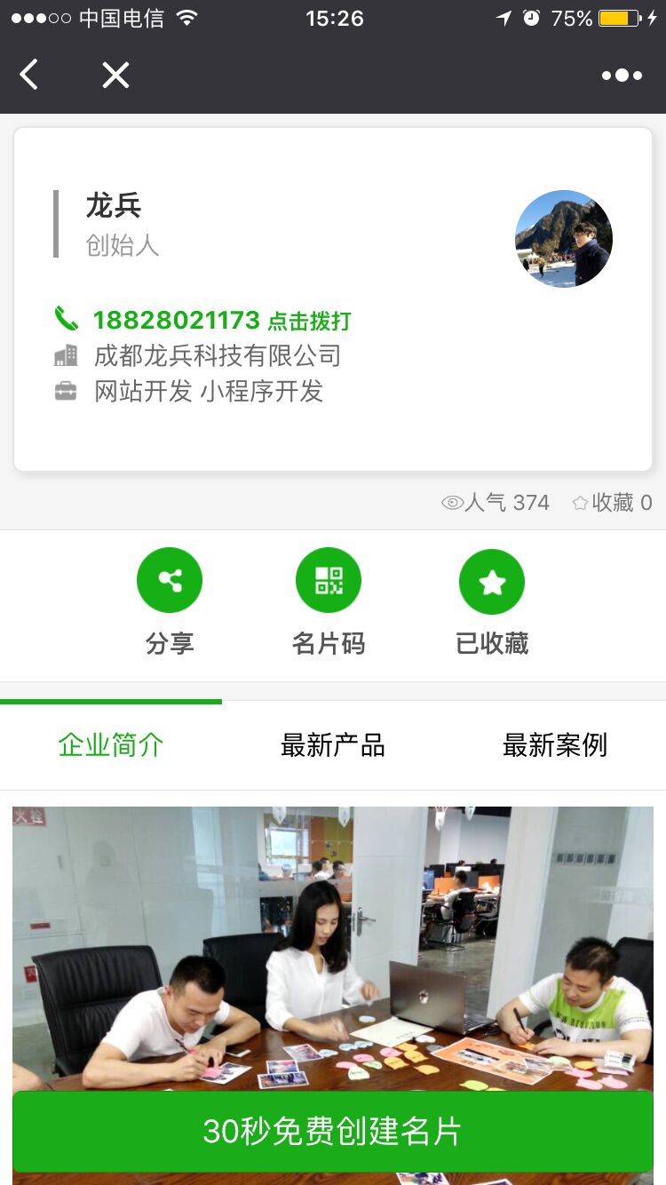 查看微信同城、名片小程序案例演示加微信/電話18828021173用戶主動分享推廣的電子名片+同城分類信息平臺小程序!完美融合電子名片+商家入駐+同城分類信息+免費禮品平臺小程序!用戶免費創(chuàng)建名片,忍不住立刻分享到微信群、好友、朋友圈,迅速吸引好友創(chuàng)建名片,進行再次分享,形成病毒裂變傳播!?名片小程序融資情況為什么雷軍1000萬投資“遞名片”電子名片小程序?電子名片小程序,低成本快速獲取用戶的能力,被資本市場持續(xù)看好!...